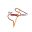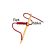 Logo with a crochet hook and five red chain stitches. The text reads five stitches, with the s formed by a loop of the yarn.