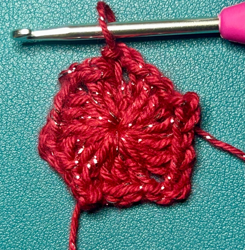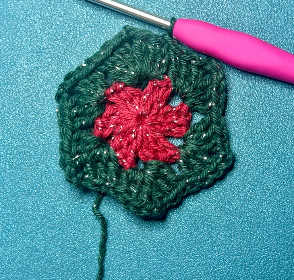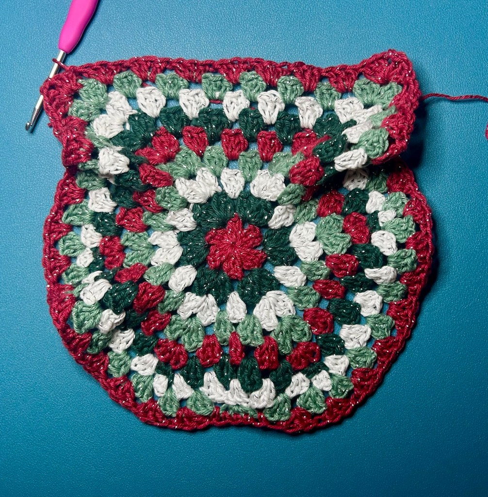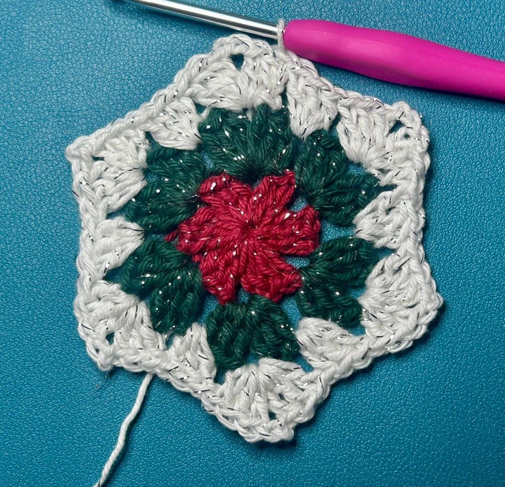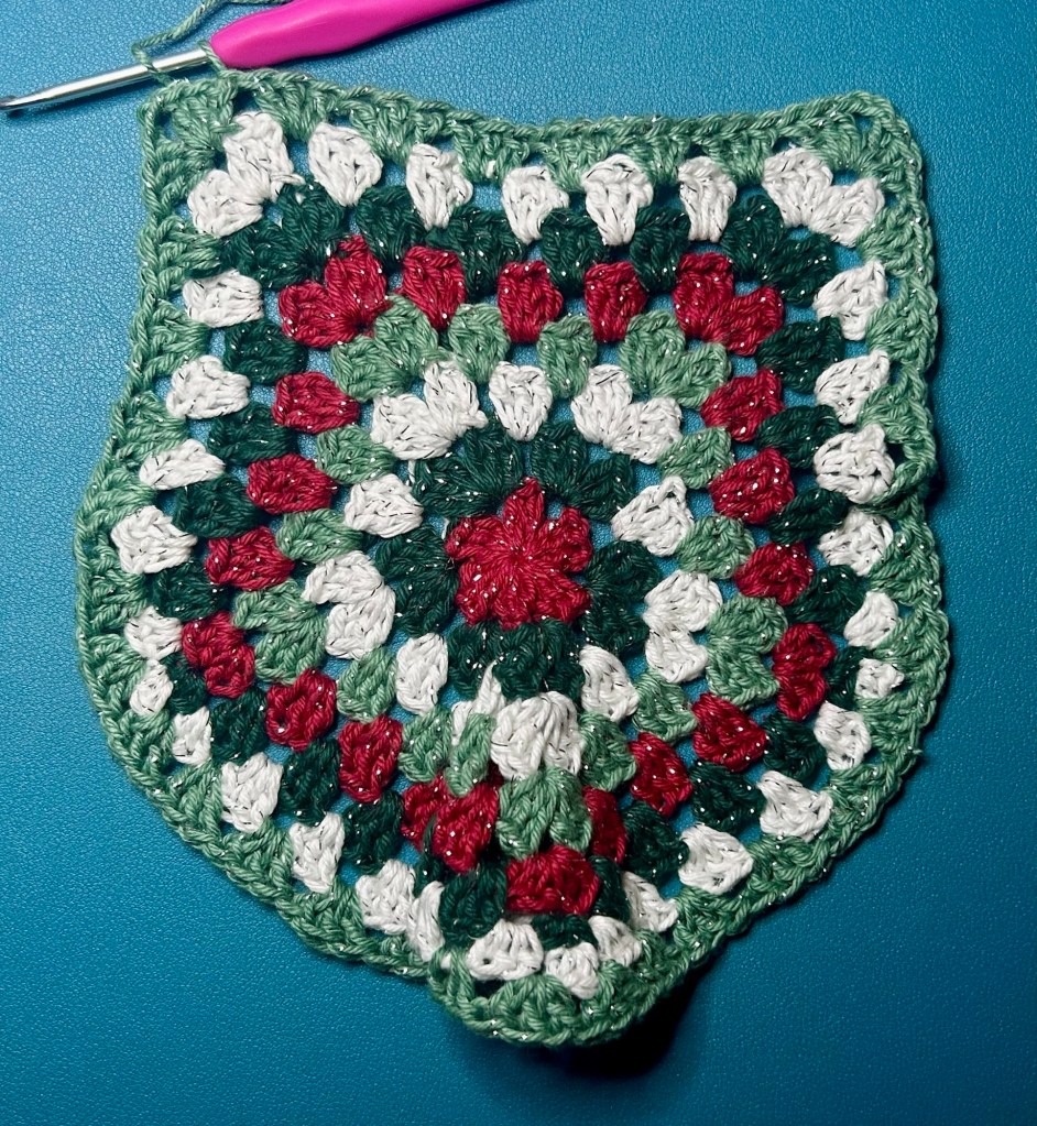 A granny hexagon stocking is an easy, straightforward make. I’ve made them for years in various sizes (which I include variations for below). The small one is just the size for stuffing a few mini-candy canes into. The medium is perfect for regular candy canes or even a narrow chocolate bar, and the large one you can put more sizeable gifts into.